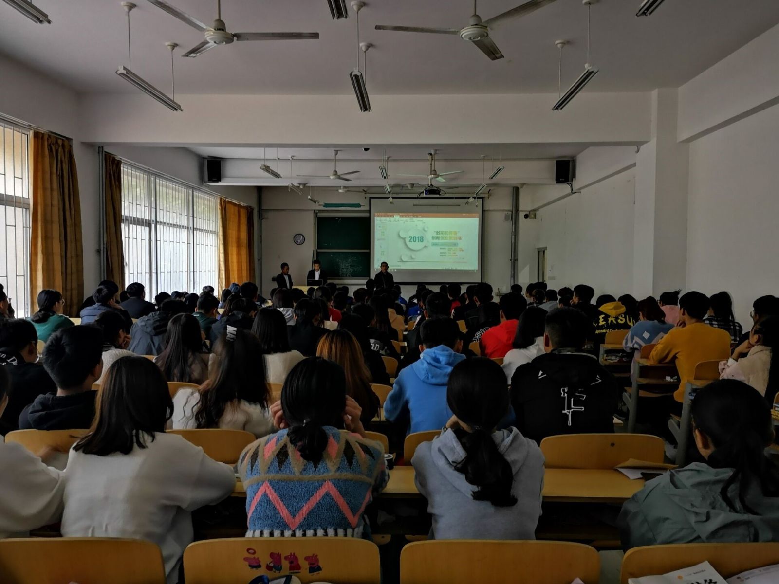 张旭和范维皓代表他们团队介绍了参加创新创业大赛获奖作品的主要情况,详细分析了团队的策略规划和创业对策,他们生动的讲解、幽默的语言,吸引了同学们的眼球,让同学们在欢笑中了解了他们创新创业的过程。